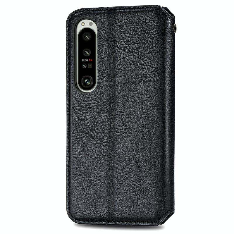For Sony Xperia 1 IV Cubic Grid Pressed Magnetic Leather Phone Case(Black)