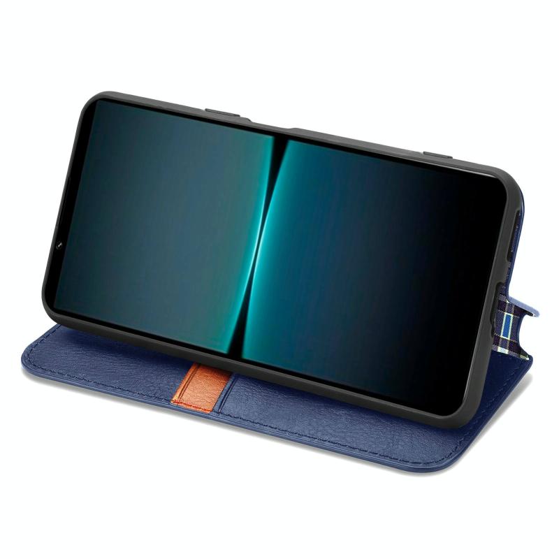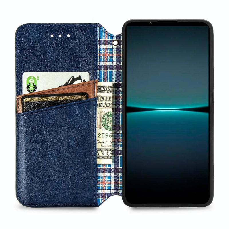 For Sony Xperia 1 IV Cubic Grid Pressed Magnetic Leather Phone Case(Blue)