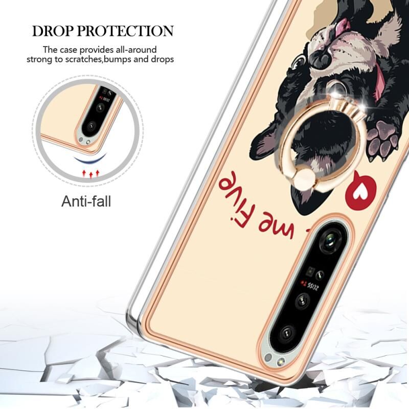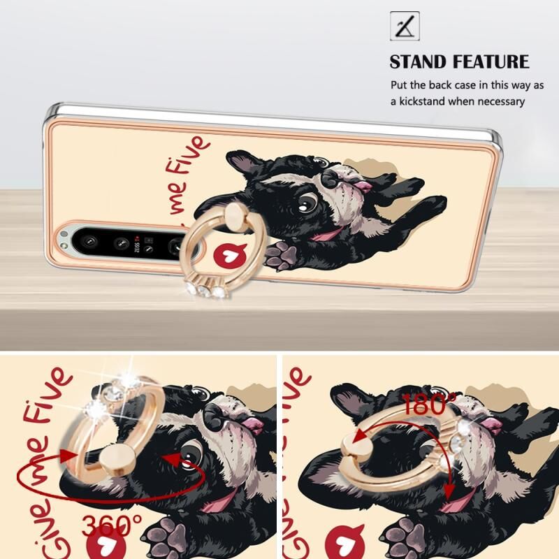 Θήκη τηλεφώνου με δακτύλιο στήριξης για Sony Xperia 1 IV, με ηλεκτρολυτική επιμετάλλωση και διπλής όψης IMD (Lucky Dog)
