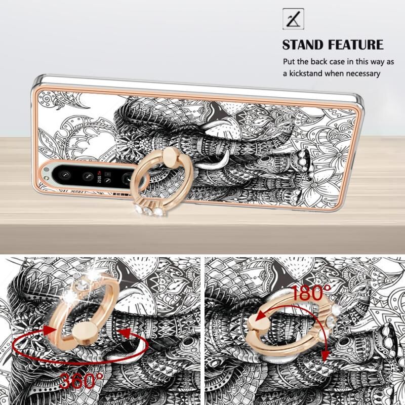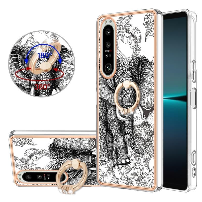 Θήκη τηλεφώνου με δακτύλιο στήριξης για Sony Xperia 1 IV, με ηλεκτρολυτική επιμετάλλωση και διπλής όψης IMD (Totem Elephant)