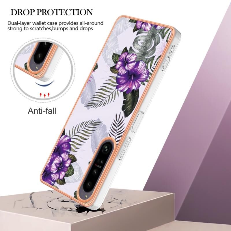 For Sony Xperia 1 IV Electroplating IMD TPU Phone Case(Purple Flower)