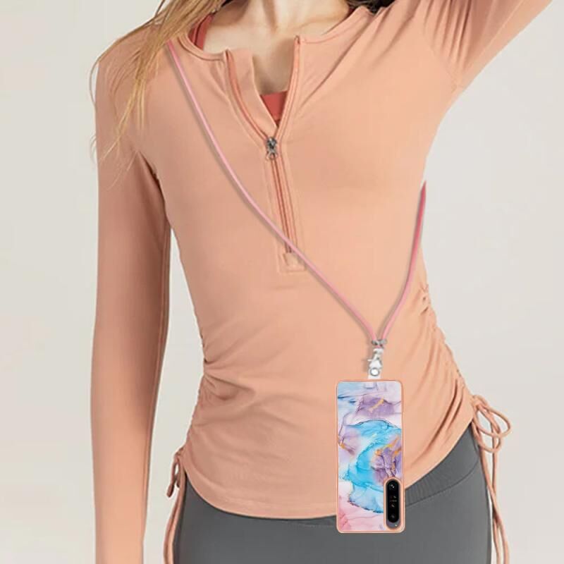 Θήκη κινητού τηλεφώνου Sony Xperia 1 IV με ηλεκτρολυτική επιμετάλλωση IMD TPU με κορδόνι (Ροζ Λέπια)