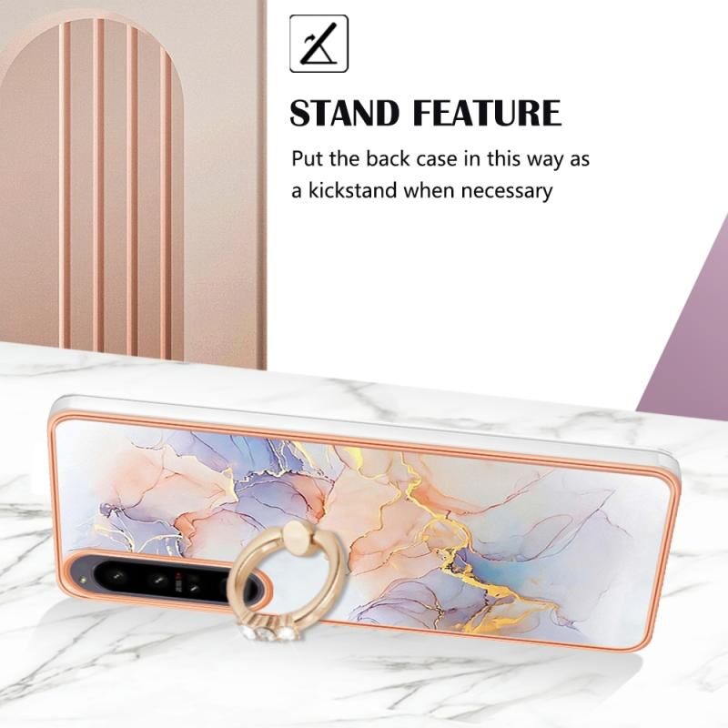 For Sony Xperia 1 IV Electroplating IMD TPU Phone Case with Ring(White Marble)