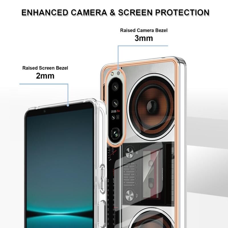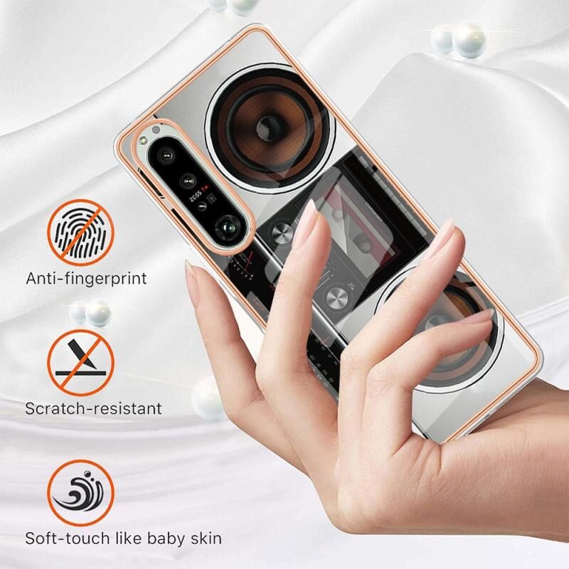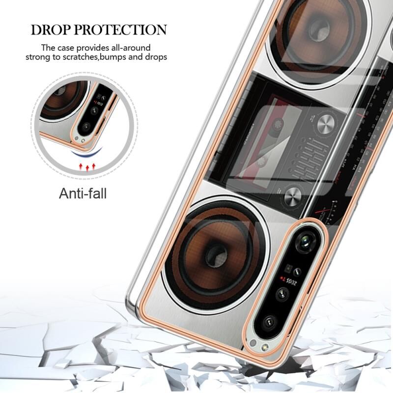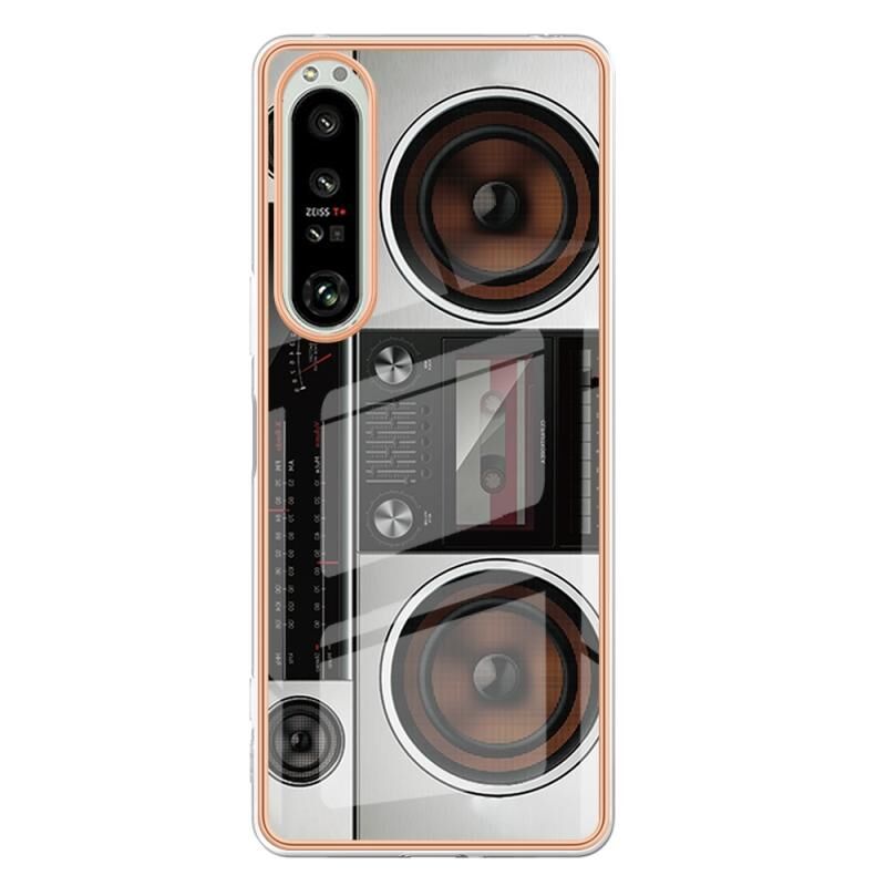 Θήκη τηλεφώνου για Sony Xperia 1 IV με ηλεκτρολυτική μαρμάρινη επένδυση διπλής όψης IMD (Ρετρό Ραδιόφωνο)