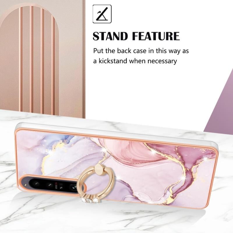 Θήκη κινητού τηλεφώνου για Sony Xperia 1 IV με ηλεκτρολυτική μαρμάρινη τεχνολογία IMD και δακτύλιο στήριξης (Μωβ 001)