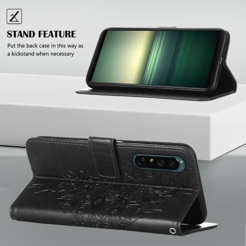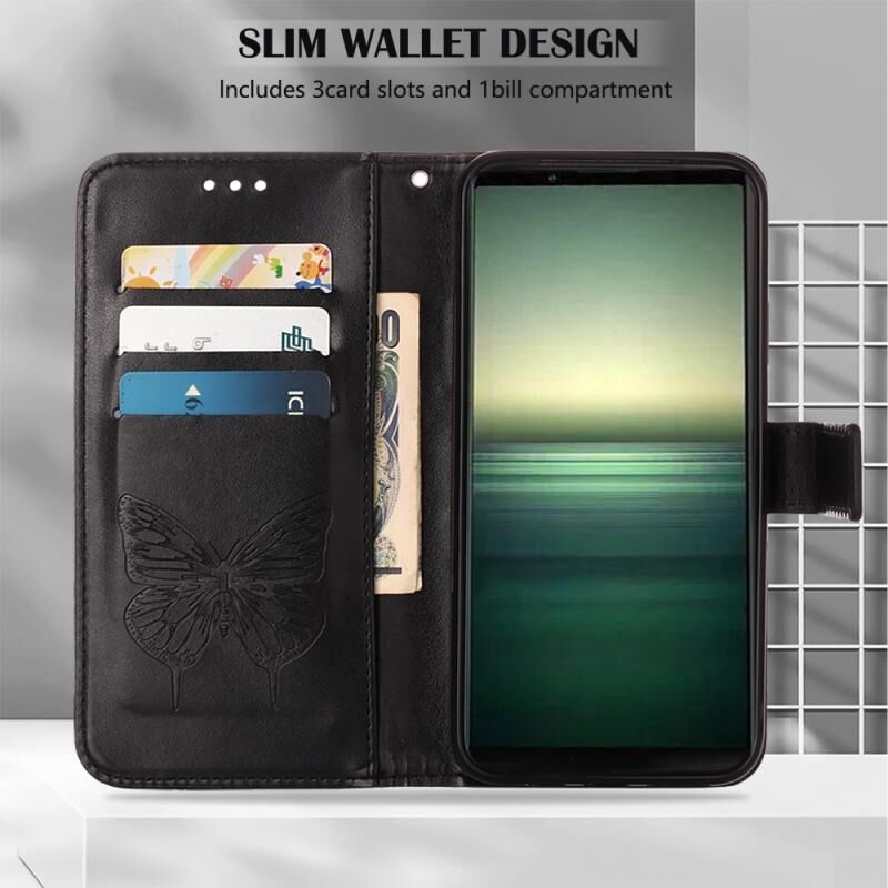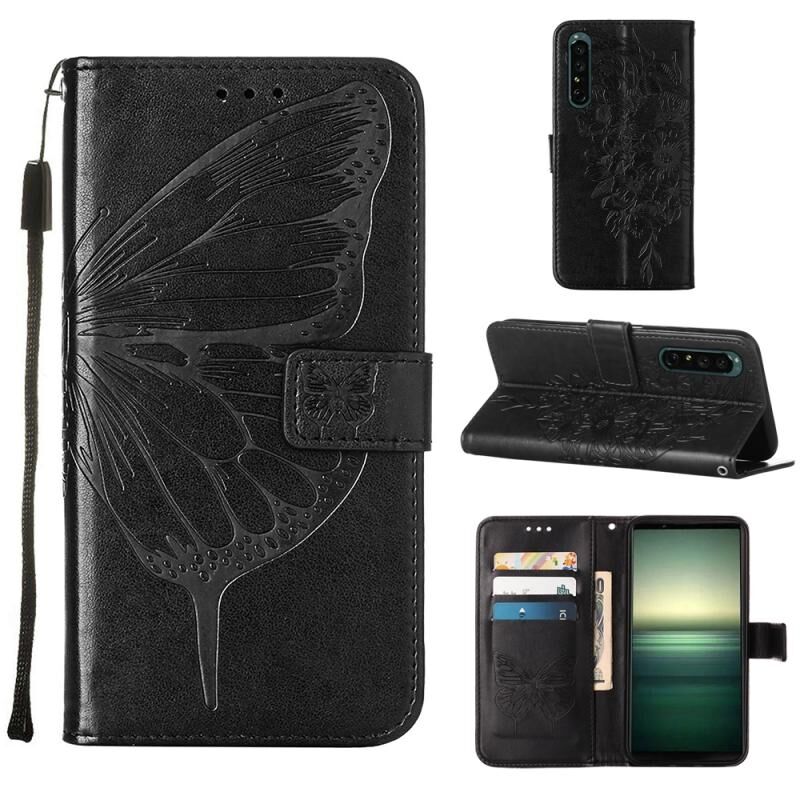 Για Sony Xperia 1 IV ανάγλυφη θήκη τηλεφώνου με δέρμα πεταλούδας (μαύρο)