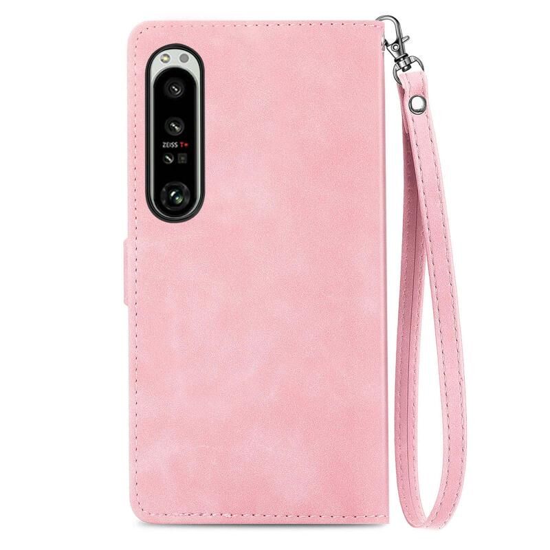 Για Sony Xperia 1 IV ανάγλυφο λουλούδι φερμουάρ δερμάτινη θήκη τηλεφώνου (ροζ)