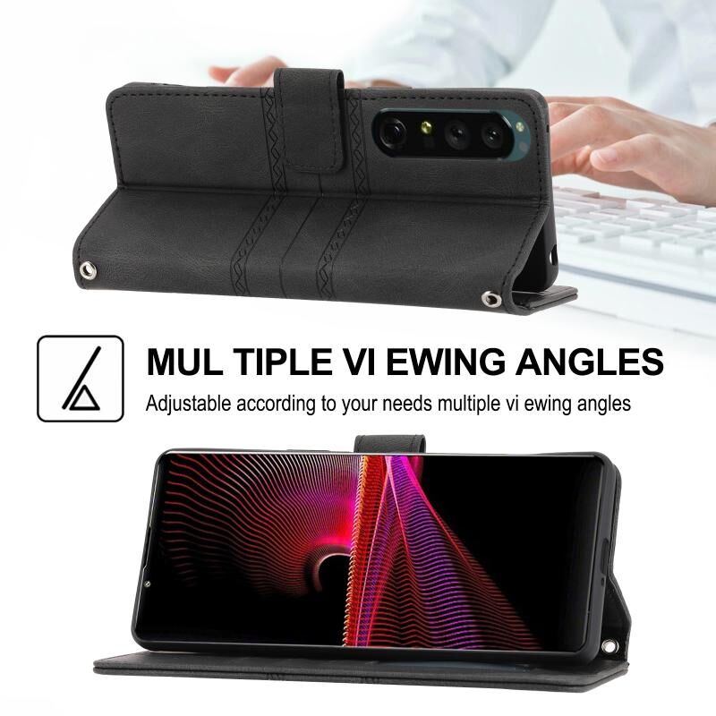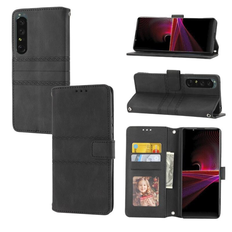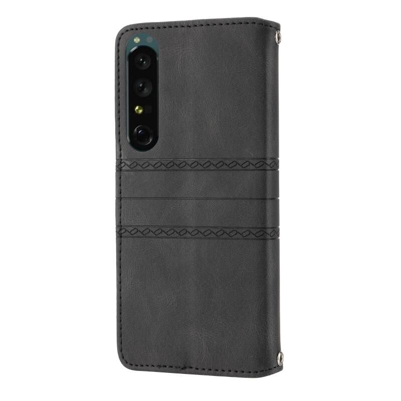 Για Sony Xperia 1 IV ανάγλυφο ριγέ μαγνητική πόρπη οριζόντια Flip τηλέφωνο δερμάτινη θήκη (μαύρο)