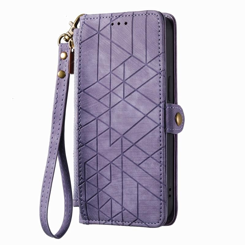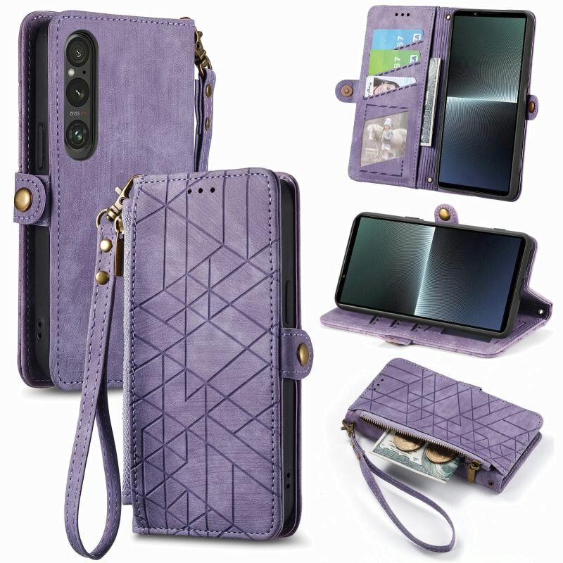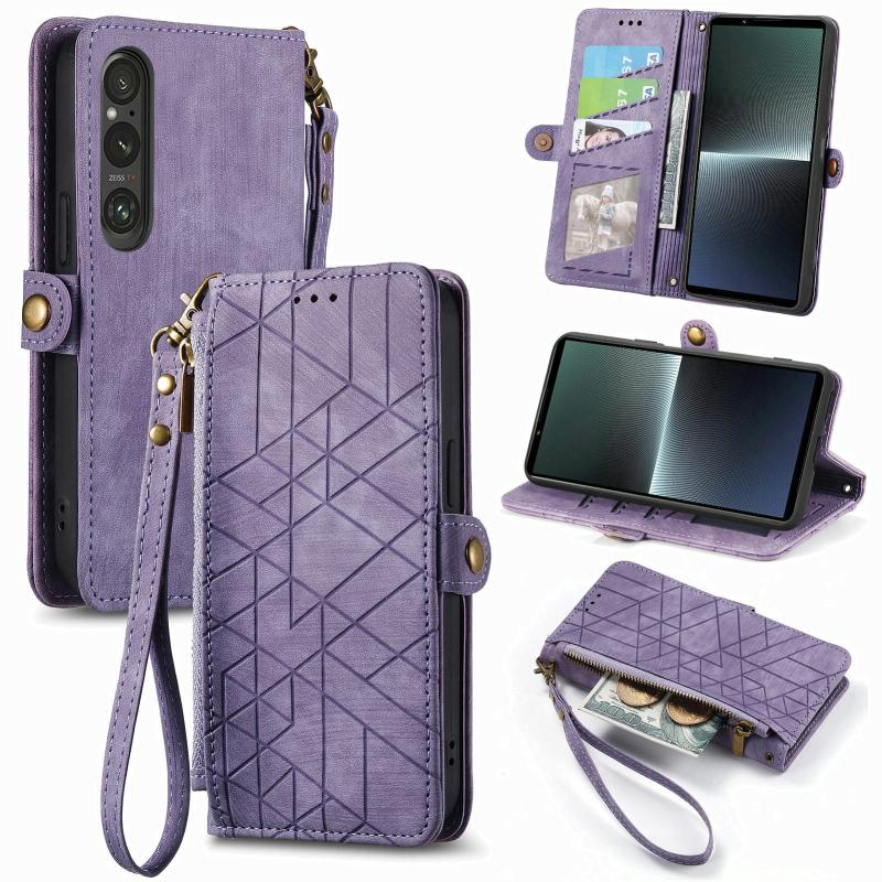 For Sony Xperia 1 IV Geometric Zipper Wallet Side Buckle Leather Phone Case(Purple)
