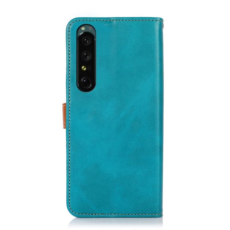 Για Sony Xperia 1 IV KHAZNEH Διπλό χρώμα δέρμα αγελαδινού δέρματος Υφή υπόθεση τηλεφώνου (μπλε)