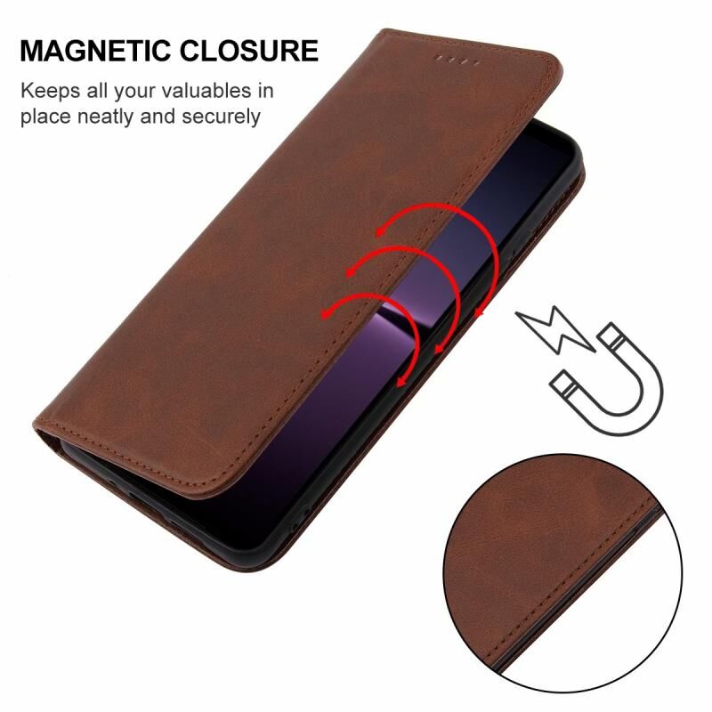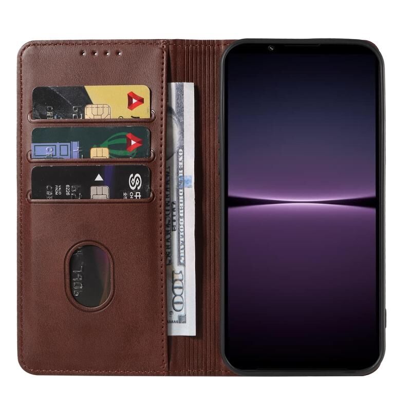 Για Sony Xperia 1 IV Μαγνητικό κλείσιμο δερμάτινη θήκη τηλεφώνου (καφέ)
