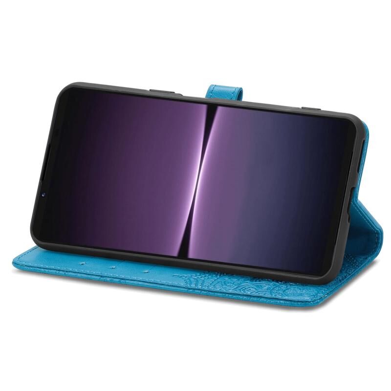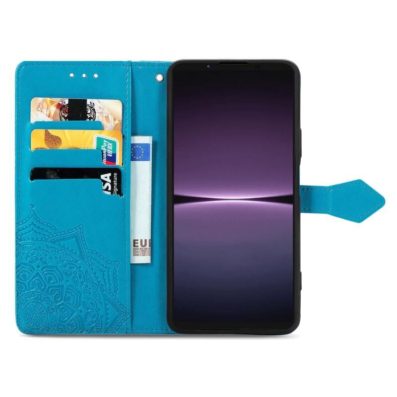 Για Sony Xperia 1 IV Mandala λουλούδι ανάγλυφο δέρμα υπόθεση τηλεφώνου (μπλε)