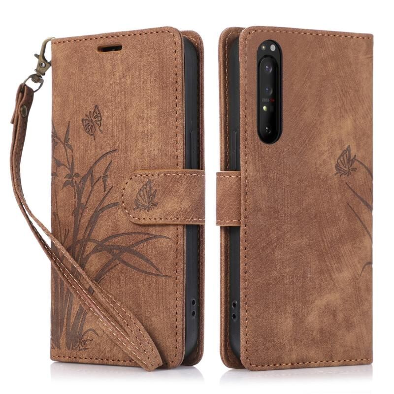 Θήκη τηλεφώνου από δέρμα με ανάγλυφο σχέδιο πεταλούδας ορχιδέας για Sony Xperia 1 IV (Μαύρο)