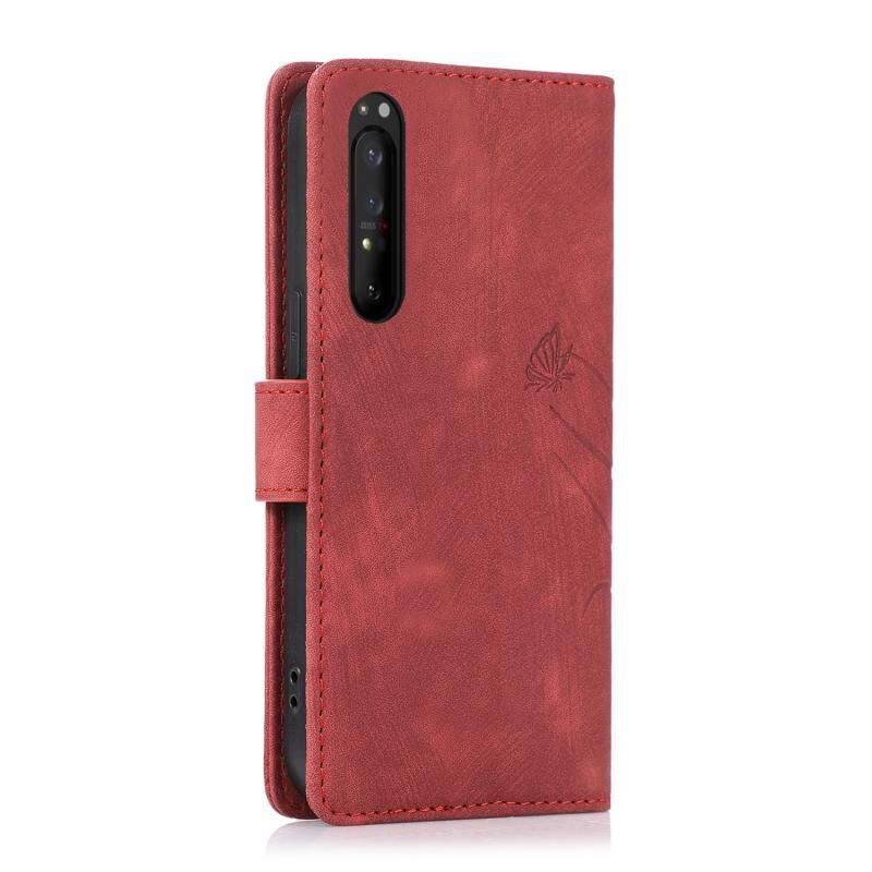 Θήκη τηλεφώνου από δέρμα με ανάγλυφο σχέδιο πεταλούδας ορχιδέας για Sony Xperia 1 IV (Μαύρο)