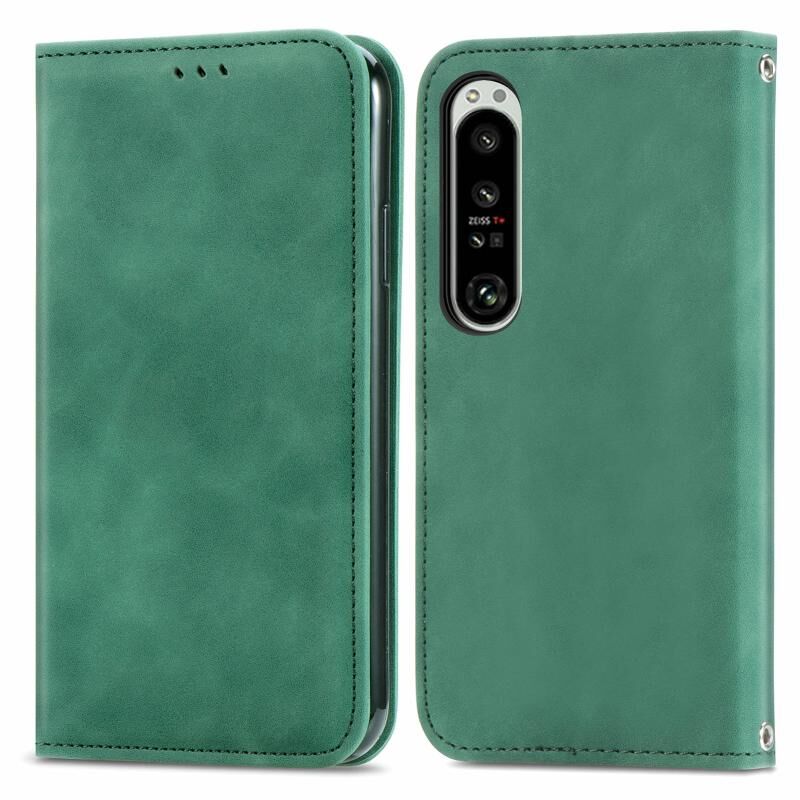 Για Sony Xperia 1 IV Retro δέρμα αίσθηση μαγνητική Flip δέρμα τηλέφωνο υπόθεση (πράσινο)