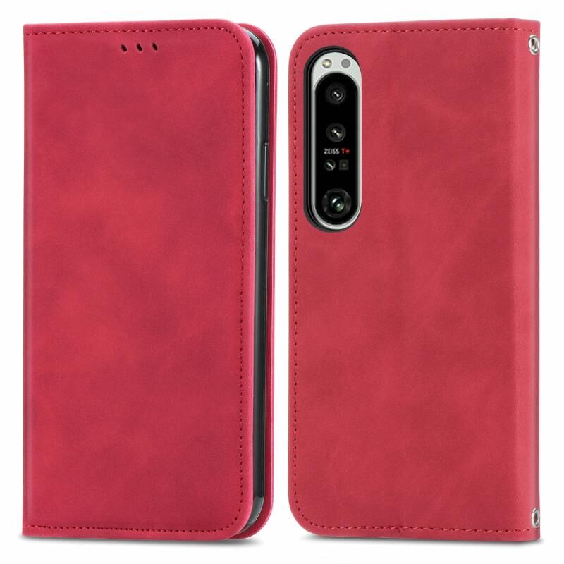 Για Sony Xperia 1 IV Retro δέρμα αίσθηση μαγνητική Flip δέρμα τηλέφωνο υπόθεση (κόκκινο)