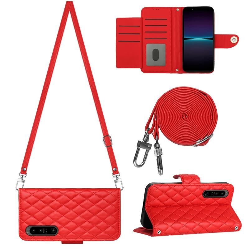 Για Sony Xperia 1 IV Rhombic Texture Flip δερμάτινη θήκη τηλεφώνου με μακρύ κορδόνι (κόκκινο)