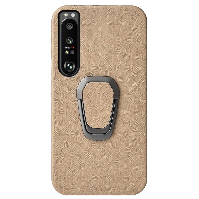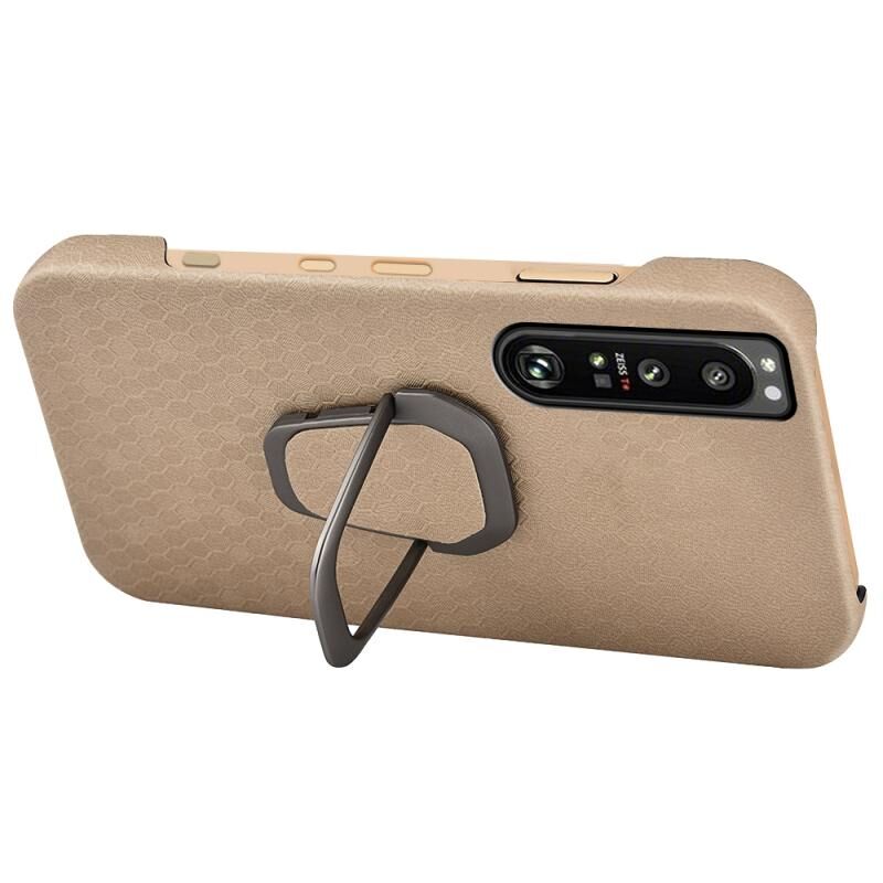 Για Sony Xperia 1 IV Δαχτυλίδι κάτοχος κηρήθρα PU υπόθεση τηλεφώνου (καφέ)