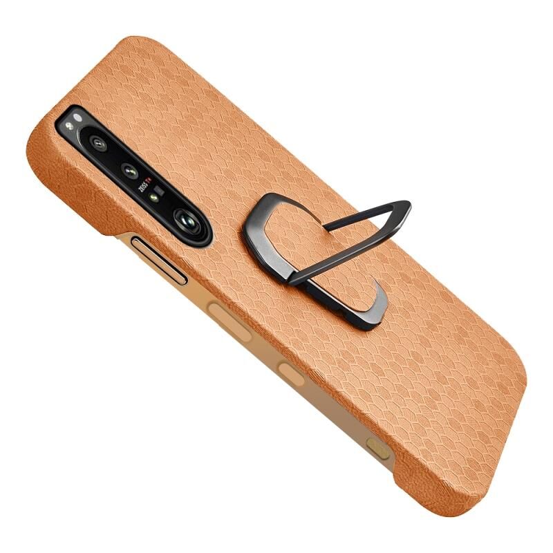 Για Sony Xperia 1 IV Δαχτυλίδι κάτοχος κηρήθρα PU υπόθεση τηλεφώνου (πορτοκαλί)