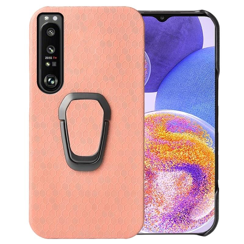Για Sony Xperia 1 IV Δαχτυλίδι κάτοχος κηρήθρα PU υπόθεση τηλεφώνου (ροζ)