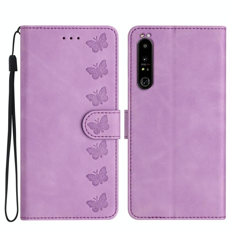 Για Sony Xperia 1 IV Επτά πεταλούδες ανάγλυφη δερμάτινη θήκη τηλεφώνου (μωβ)