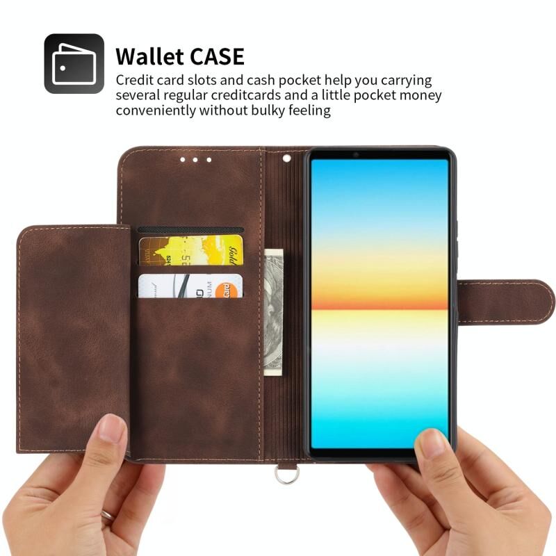 Για Sony Xperia 1 IV Skin-feel λουλούδια ανάγλυφο πορτοφόλι δερμάτινη θήκη τηλεφώνου (καφέ)