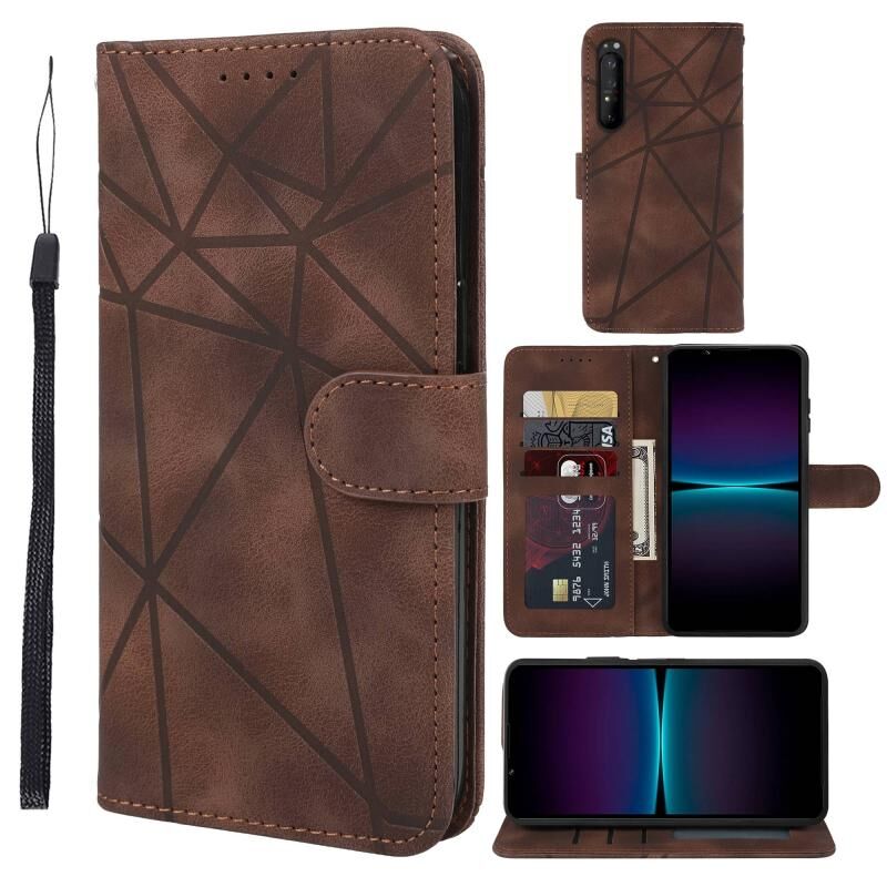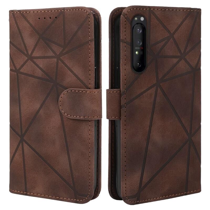 Για το Sony Xperia 1 IV Skin Feel Geometric Lines Δερμάτινη θήκη τηλεφώνου (καφέ)