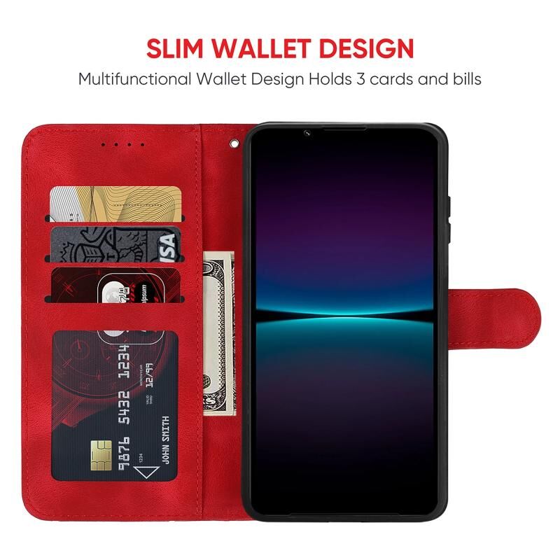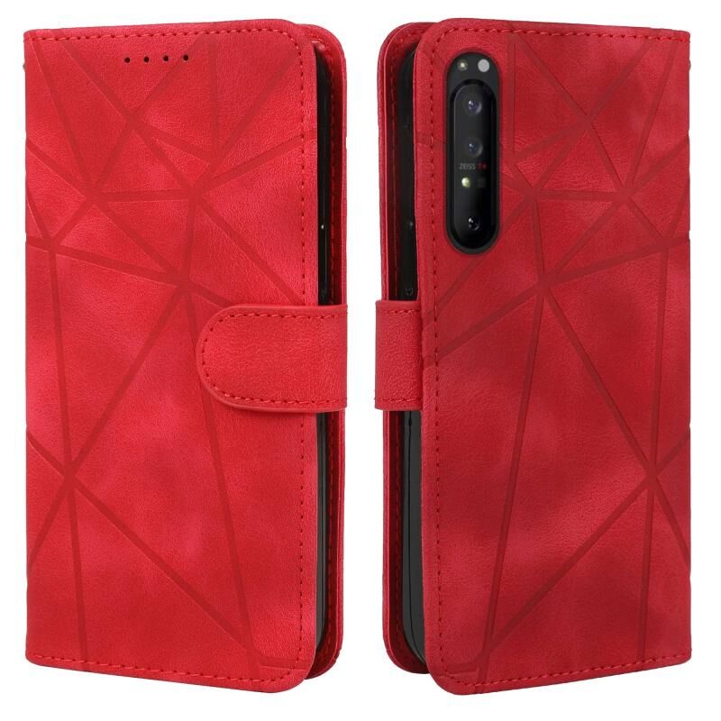 Για το Sony Xperia 1 IV Skin Feel Γεωμετρικές γραμμές δερμάτινη θήκη τηλεφώνου (κόκκινο)