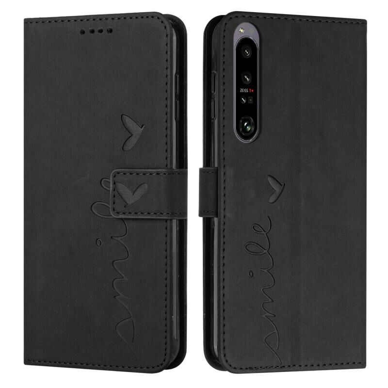 Θήκη τηλεφώνου από δέρμα με ανάγλυφο σχέδιο καρδιάς για Sony Xperia 1 IV (Καφέ)