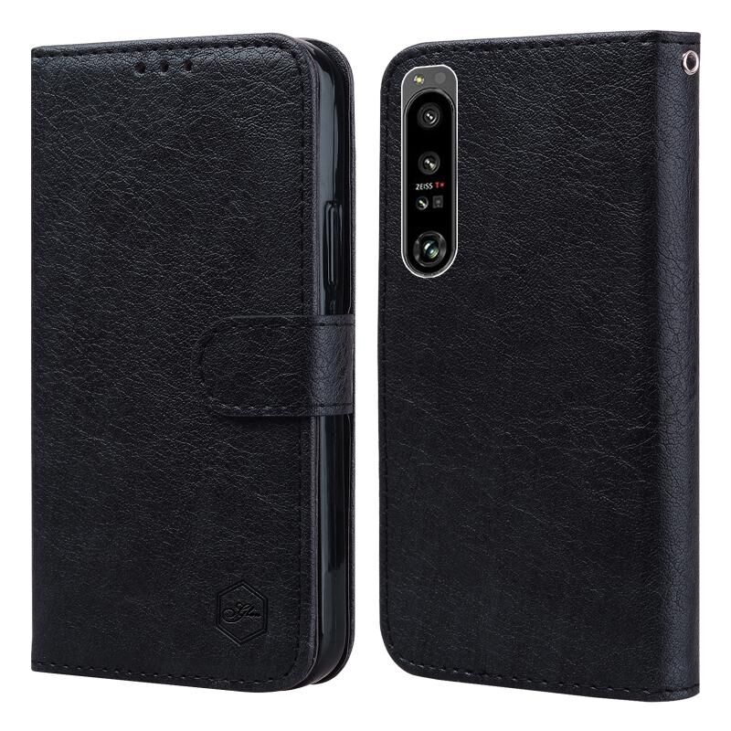 Θήκη κινητού τηλεφώνου για Sony Xperia 1 IV, με υφή δέρματος λαδιού και υλικό PU + TPU (Μαύρο)
