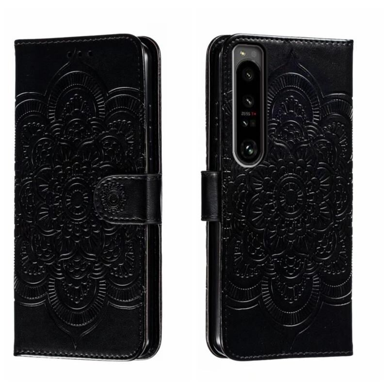 Για Sony Xperia 1 IV Sun Mandala ανάγλυφο μοτίβο τηλέφωνο δερμάτινη θήκη (μαύρο)