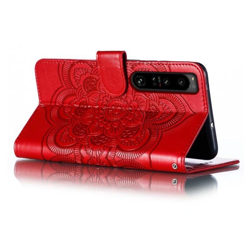Για Sony Xperia 1 IV Sun Mandala ανάγλυφο μοτίβο τηλέφωνο δερμάτινη θήκη (κόκκινο)