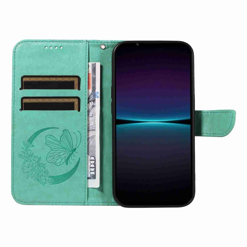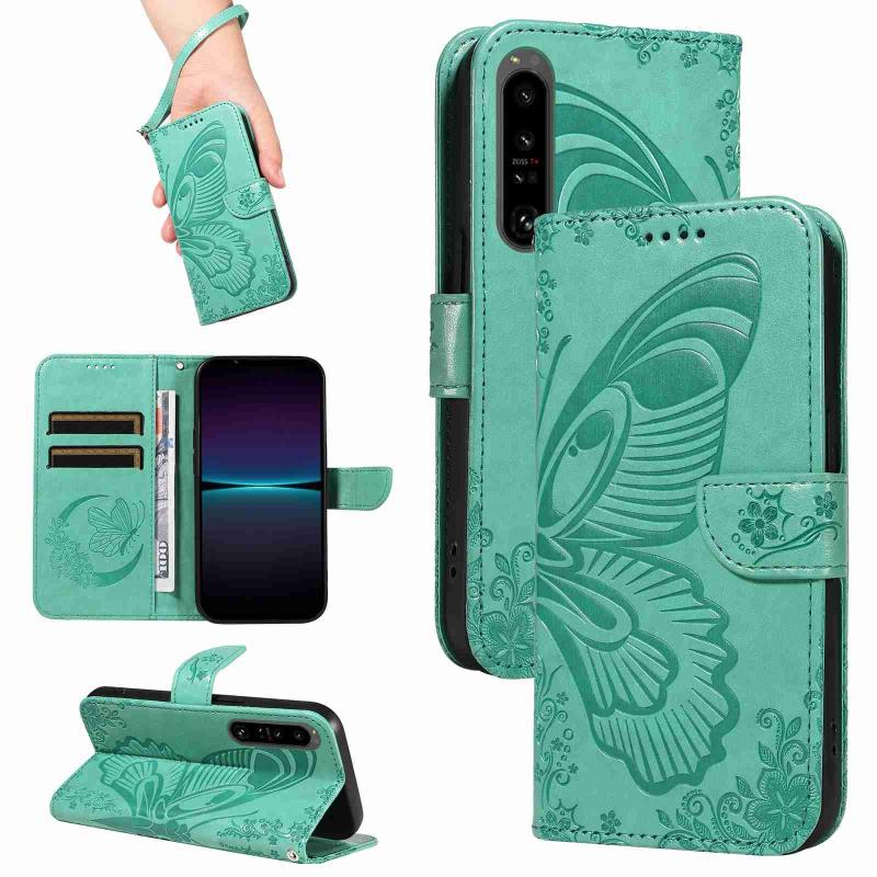 For Sony Xperia 1 IV Swallowtail Butterfly Embossed Leather Phone Case(Green)