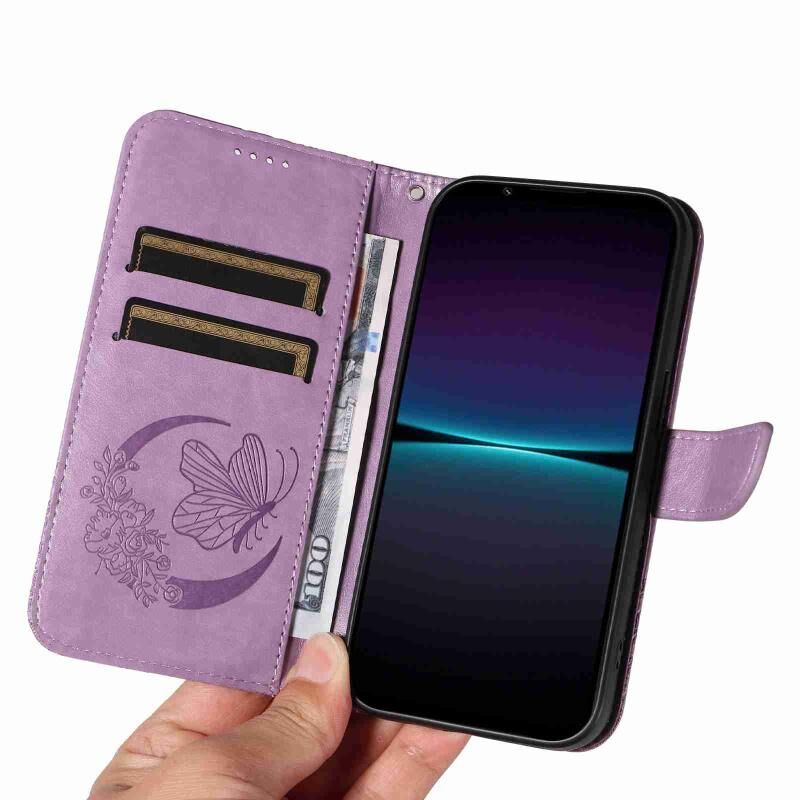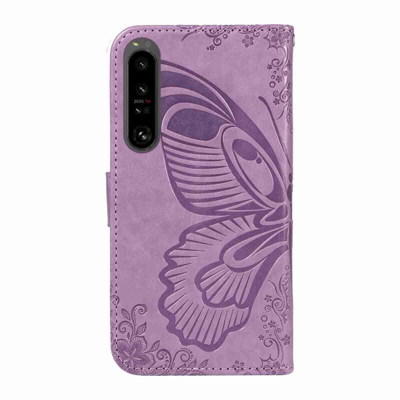 Θήκη τηλεφώνου από δέρμα με ανάγλυφο σχέδιο πεταλούδας Swallowtail για Sony Xperia 1 IV (Κόκκινο)