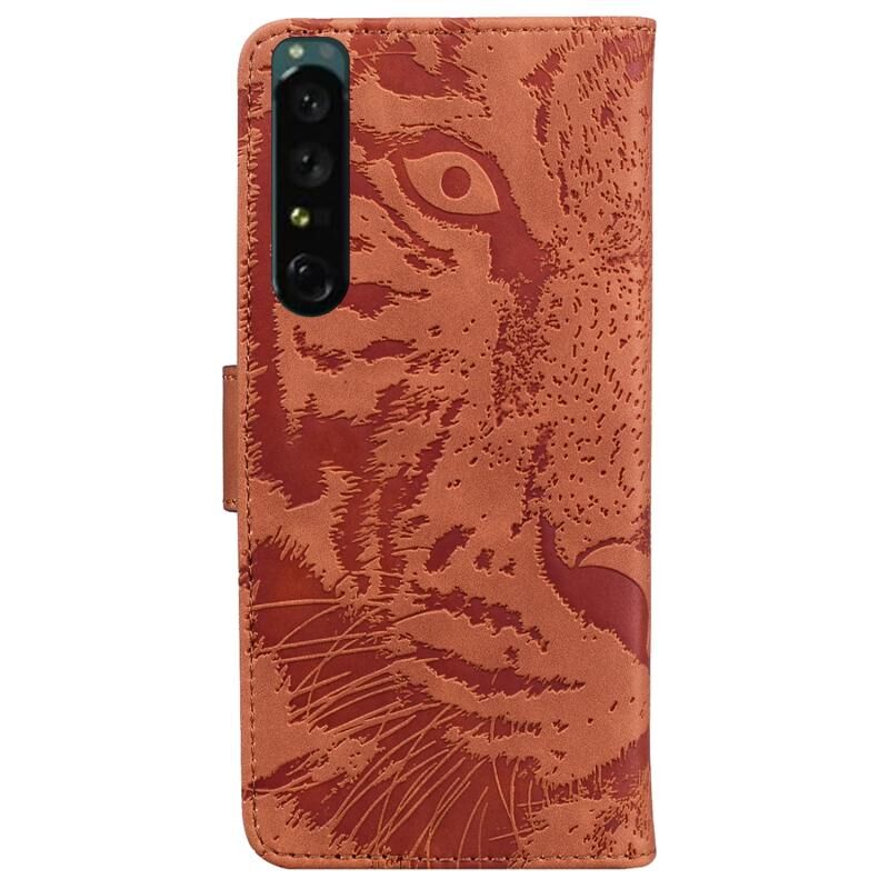 Θήκη τηλεφώνου από δέρμα με ανάγλυφο τίγρη για Sony Xperia 1 IV (Μαύρο)