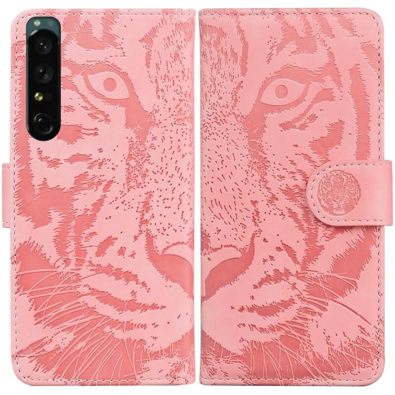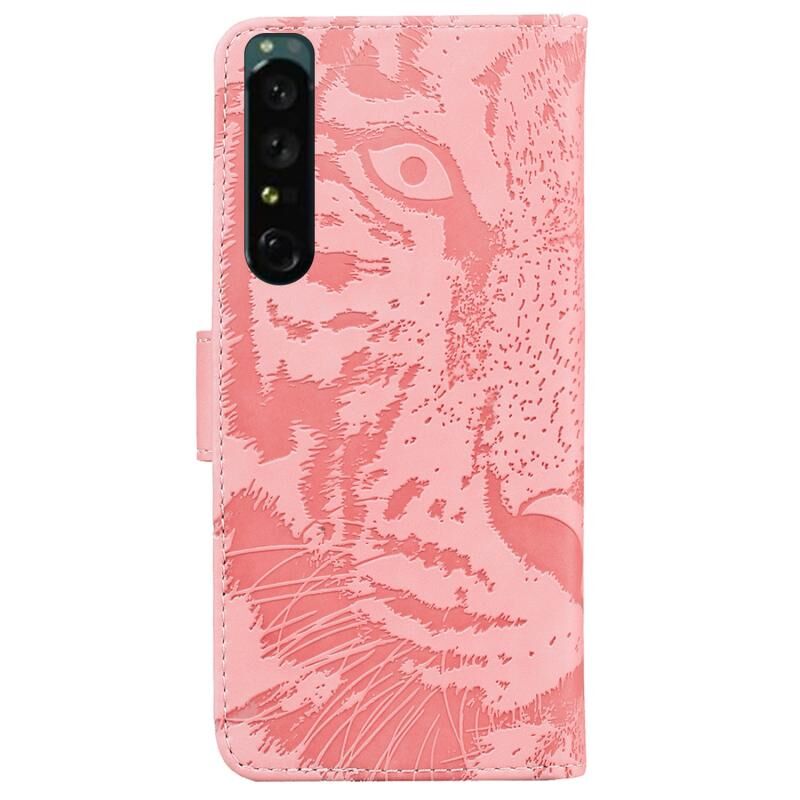 Θήκη τηλεφώνου από δέρμα με ανάγλυφο τίγρη για Sony Xperia 1 IV (Μαύρο)