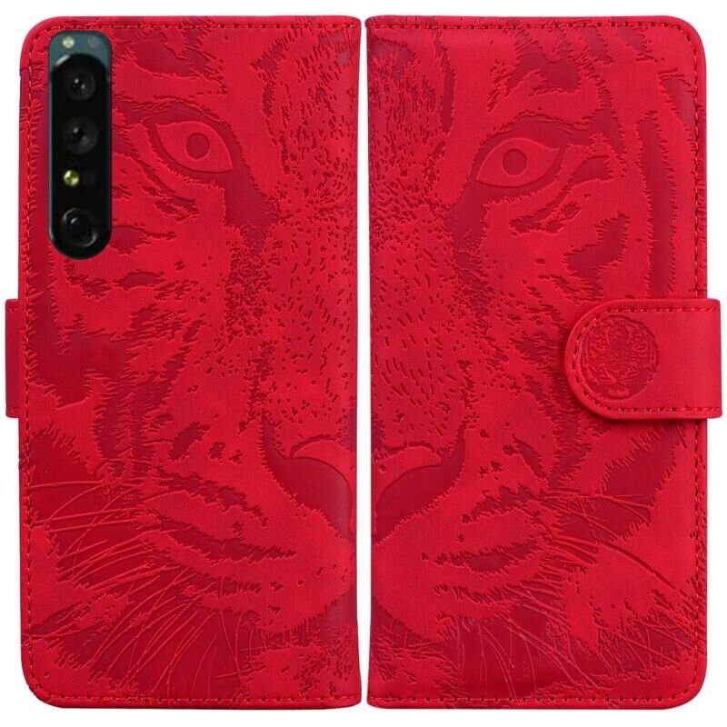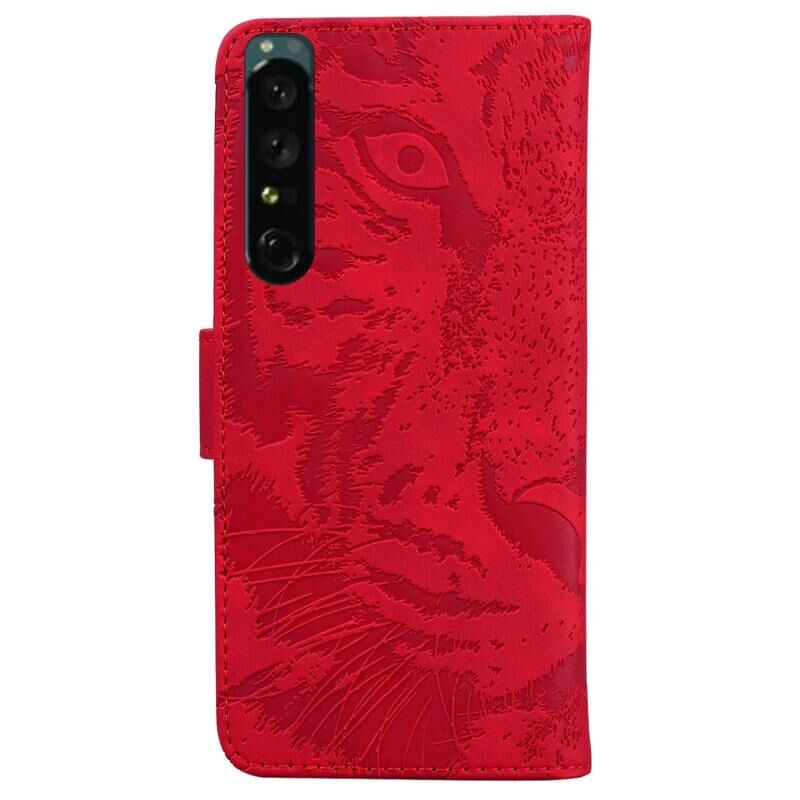 Θήκη τηλεφώνου από δέρμα με ανάγλυφο τίγρη για Sony Xperia 1 IV (Μαύρο)