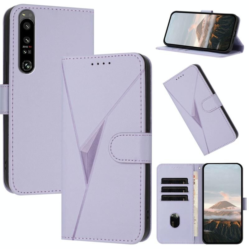 Για Sony Xperia 1 IV Τρίγωνο μοτίβο αγκράφα κούμπωμα δερμάτινη θήκη τηλεφώνου (Light Purple)