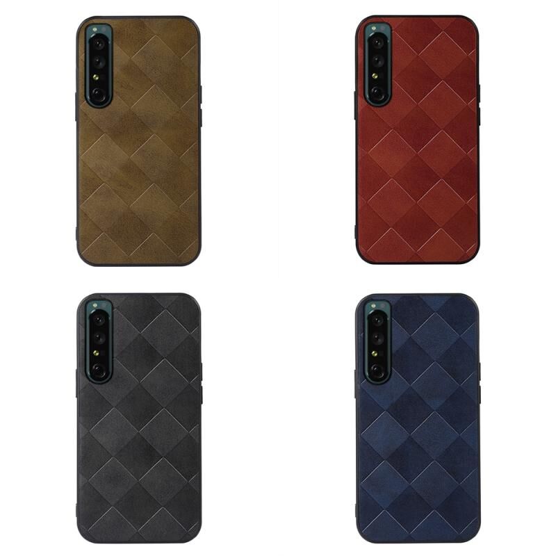 Για Sony Xperia 1 IV Weave καρό PU θήκη τηλεφώνου (μαύρο)