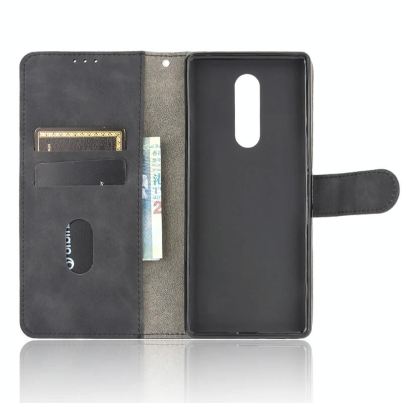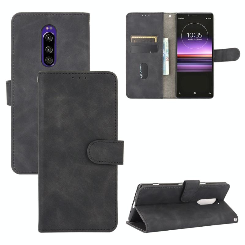 For Sony Xperia 1 Solid Color Skin Feel Magnetic Buckle Horizontal Flip Calf Texture PU Leather Case with Holder & Card Slots & Wallet(Black)