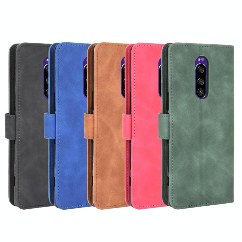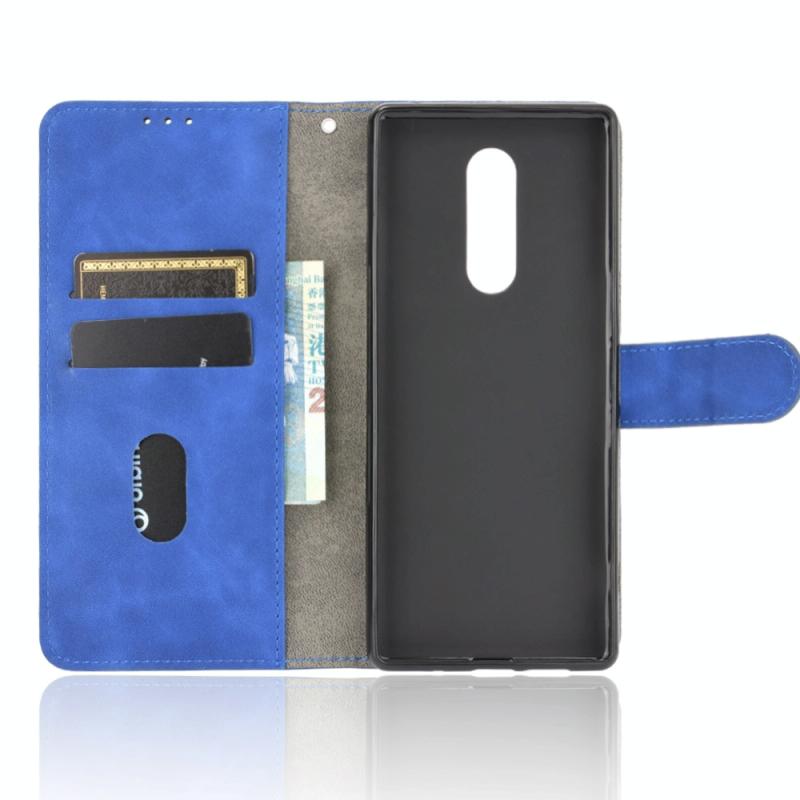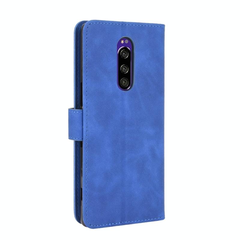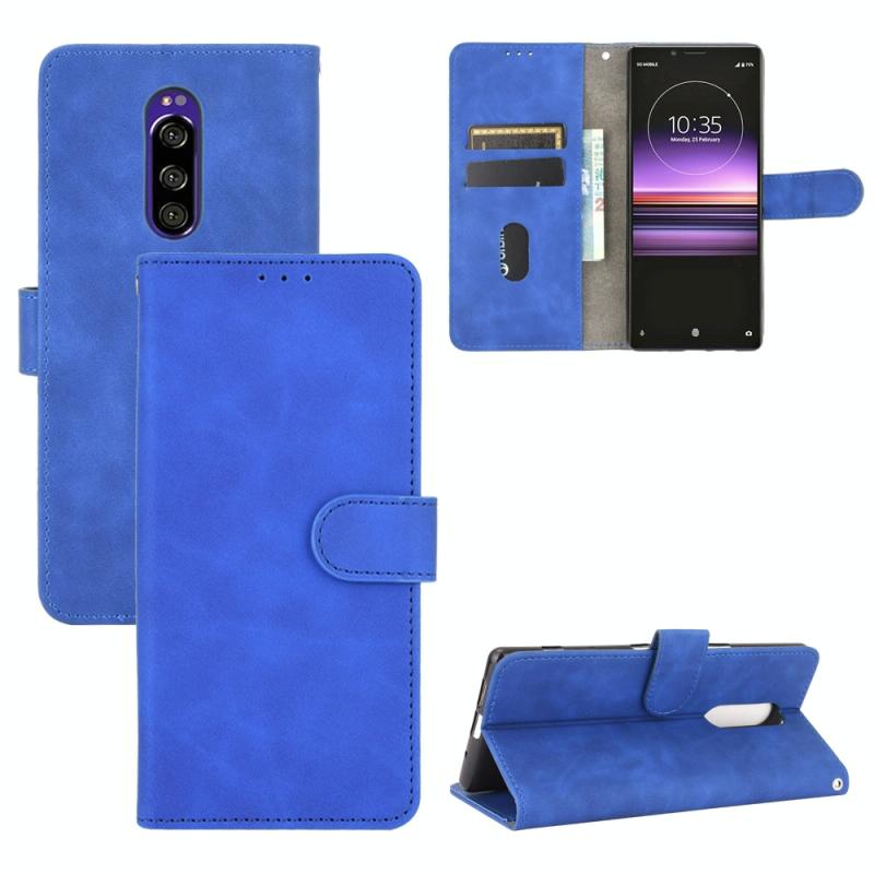 For Sony Xperia 1 Solid Color Skin Feel Magnetic Buckle Horizontal Flip Calf Texture PU Leather Case with Holder & Card Slots & Wallet(Blue)