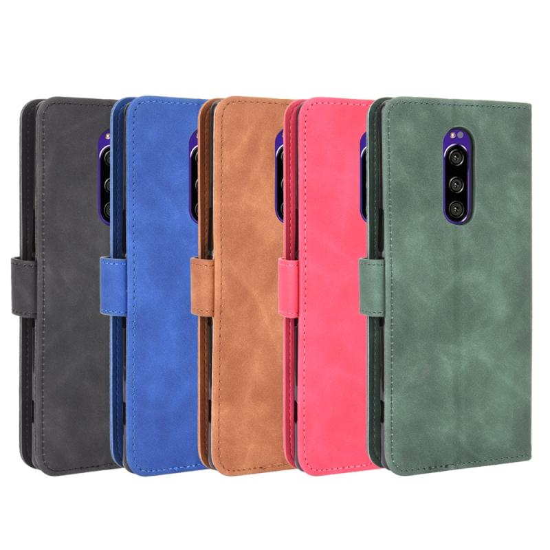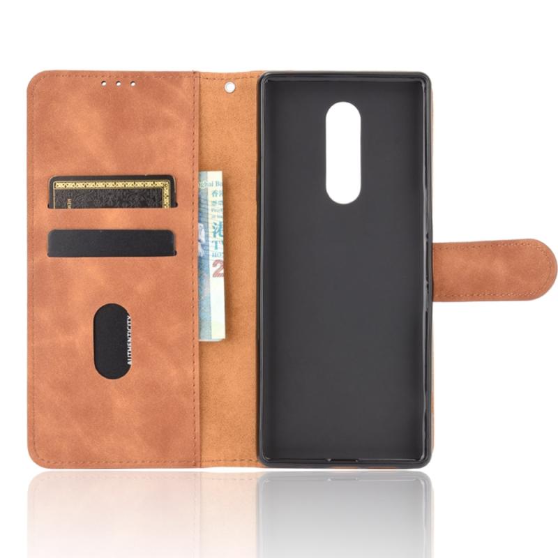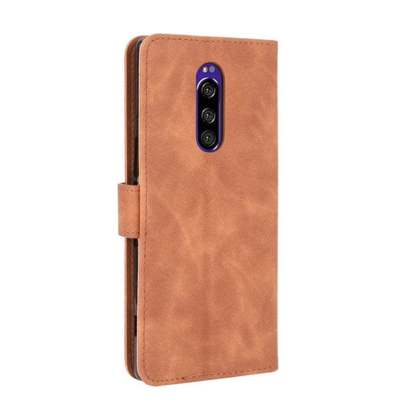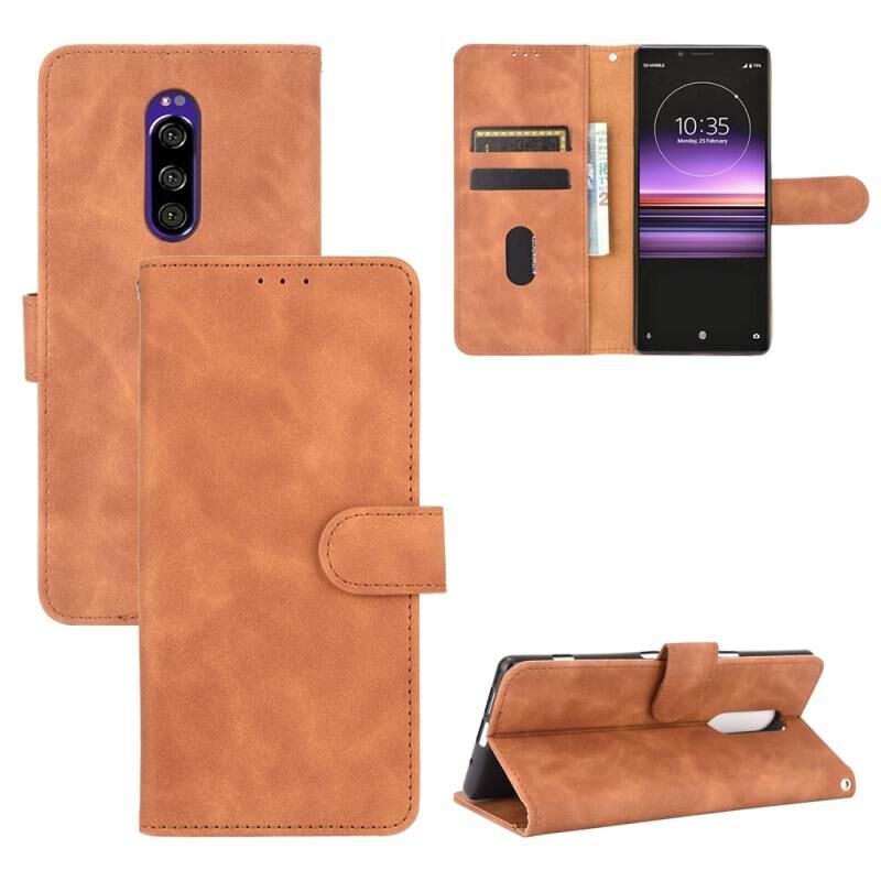 For Sony Xperia 1 Solid Color Skin Feel Magnetic Buckle Horizontal Flip Calf Texture PU Leather Case with Holder & Card Slots & Wallet(Brown)