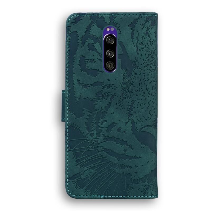 Θήκη δέρματος οριζόντιας αναδίπλωσης με ανάγλυφο μοτίβο τίγρης για Sony Xperia 1 με βάση & υποδοχές καρτών & πορτοφόλι (Κόκκινο)