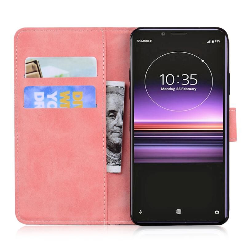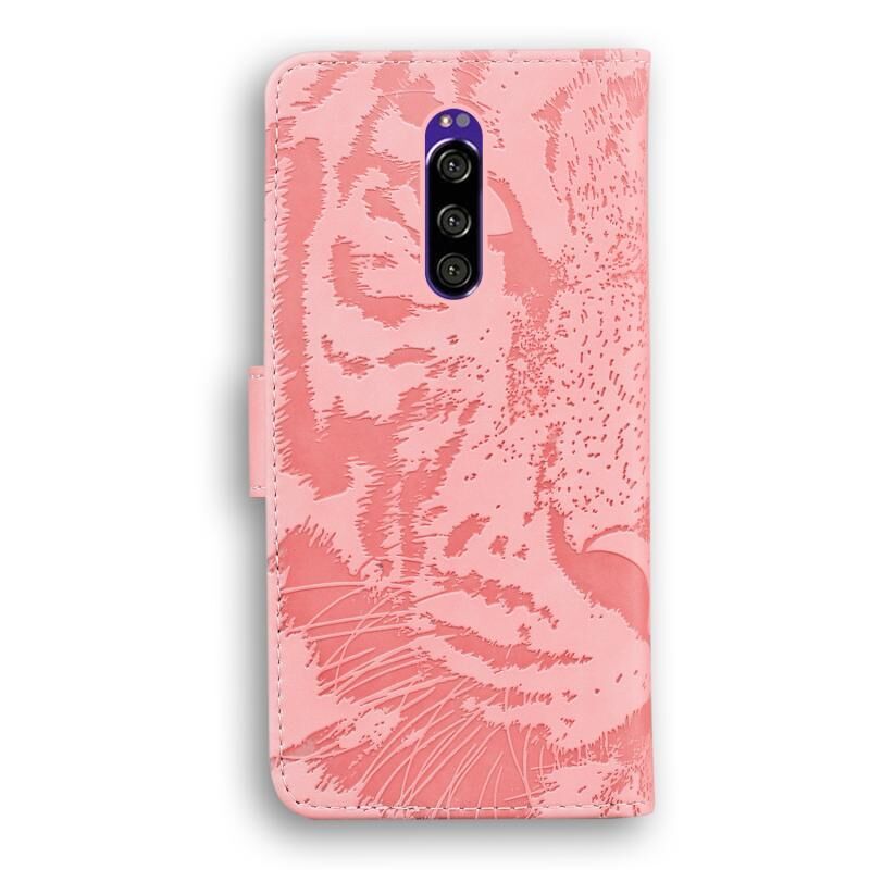 Θήκη δέρματος οριζόντιας αναδίπλωσης με ανάγλυφο μοτίβο τίγρης για Sony Xperia 1 με βάση & υποδοχές καρτών & πορτοφόλι (Κόκκινο)