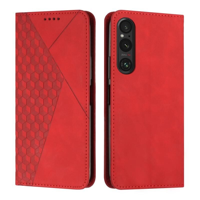 Για το Sony Xperia 1 V 2023 Diamond Splicing δέρμα αίσθηση μαγνητική δερμάτινη θήκη τηλεφώνου (κόκκινο)