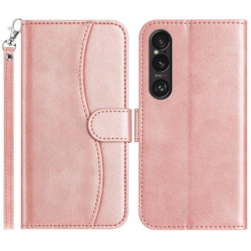 For Sony Xperia 1 V 2023 Dual-Folded S-shape Leather Phone Case(Rose Gold)
