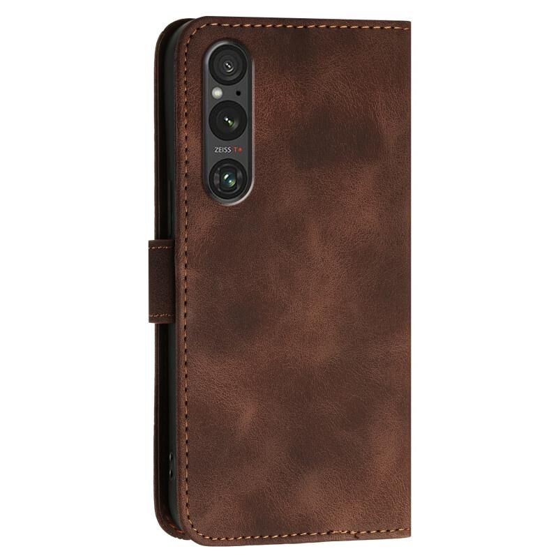 Θήκη τηλεφώνου από δέρμα με σχέδιο πλέγματος και ανάγλυφο πεταλούδας για Sony Xperia 1 V 2023 με κορδόνι (Καφέ)