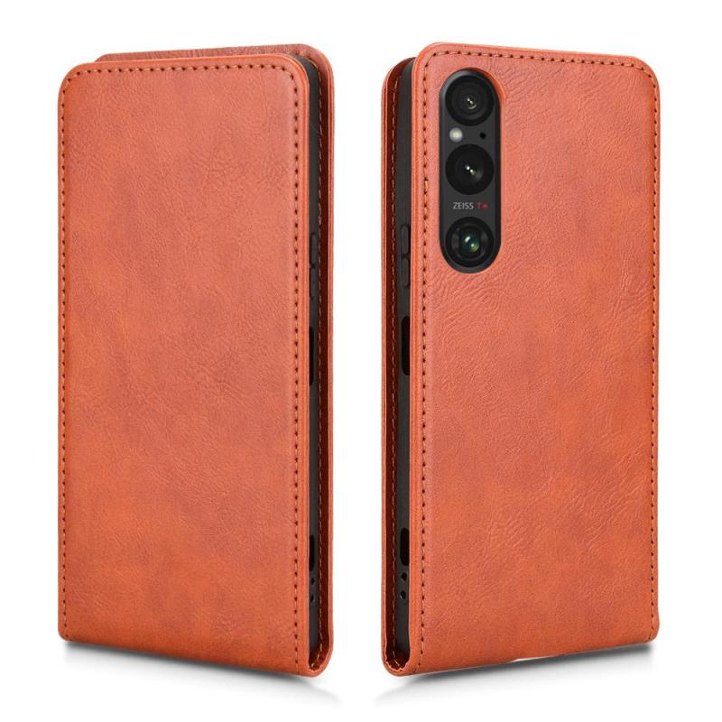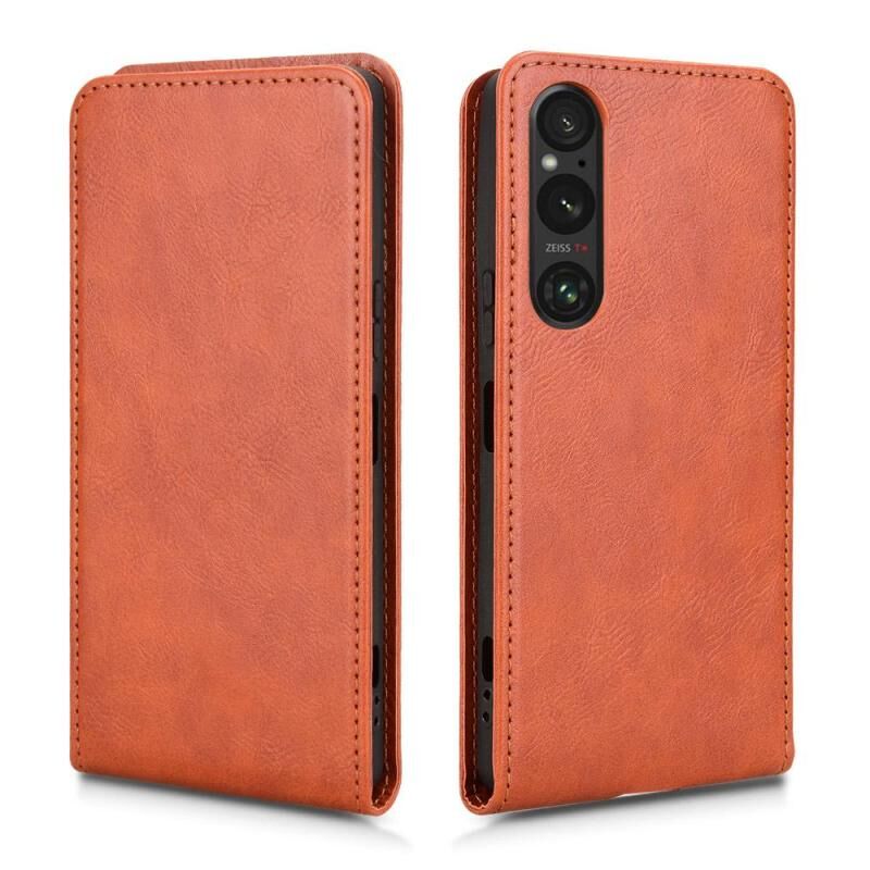 For Sony Xperia 1 V 2023 Magnetic Vertical Flip Leather Phone Case(Brown)