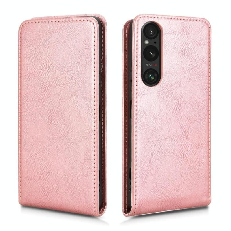 For Sony Xperia 1 V 2023 Magnetic Vertical Flip Leather Phone Case(Rose Gold)