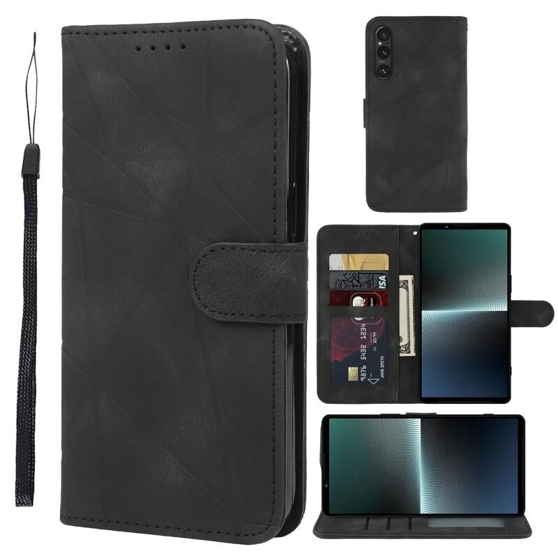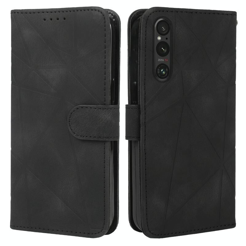 Για το Sony Xperia 1 V 2023 Skin Feel γεωμετρικές γραμμές δερμάτινη θήκη τηλεφώνου (μαύρο)